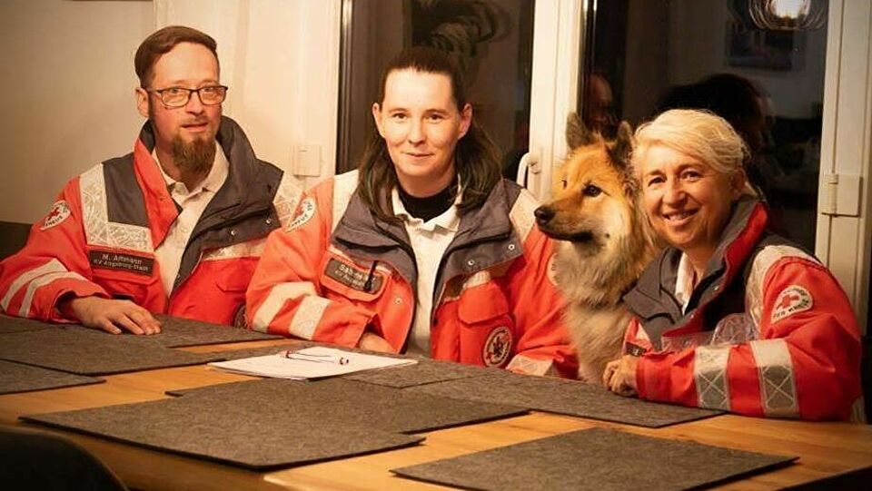 Sabine Mayr (Bild Mitte) gehört seit November 2014 dem Roten Kreuz an. Von der Bereitschaft Günzburg wechselte sie im März 2020 in die Bereitschaft 5 und die Rettungshundestaffel Augsburg-Stadt. Neben ihren sanitätsdienstlichen Aufgaben ist Sabine Kreisfachdienstleiterin für die Rettungshundearbeit.